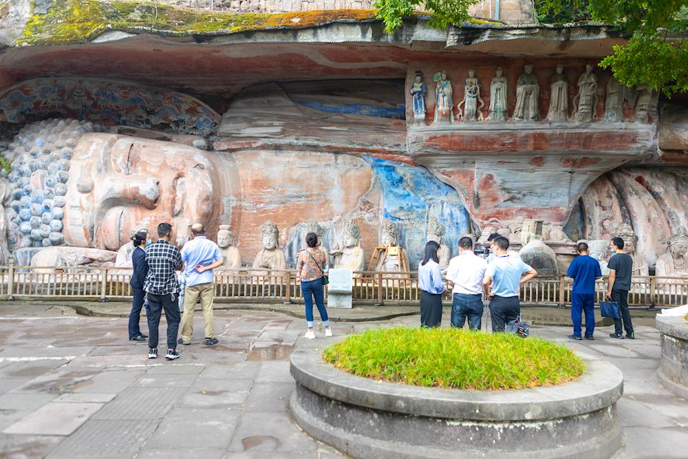 大足石刻景区从今日起恢复开放 来源: 发布时间:2022-09-07 11:00:09 浏览次数: 次 【字体:小 大】 9月1日,游客正在宝顶山石刻景区参观。据悉,自8月20日以来,因连晴高温和森林防火需要,大足石刻研究院相继对北山石刻景区、宝顶山石刻景区以及大足石刻博物馆、大足石刻游客中心、宝顶山圣寿寺等地进行暂???,随着气温下降和景区检修抢修工作完成,从9月1日起,上述景区景点全面恢复开放。(瞿波 ) 【打印正文】 相关信息