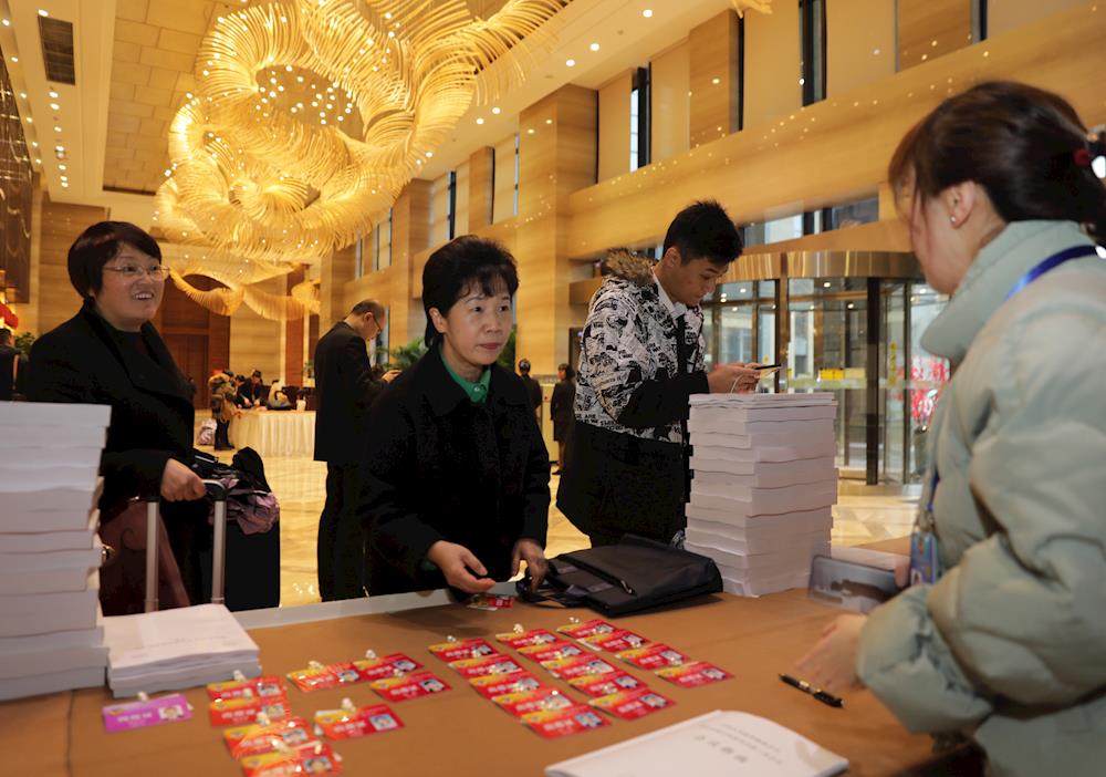 报到后,代表、委员们认真翻阅会议资料,相互交流讨论,抓紧时间对所提提案、建议进行修改完善,充分展现出不负使命、认真履职的劲头。